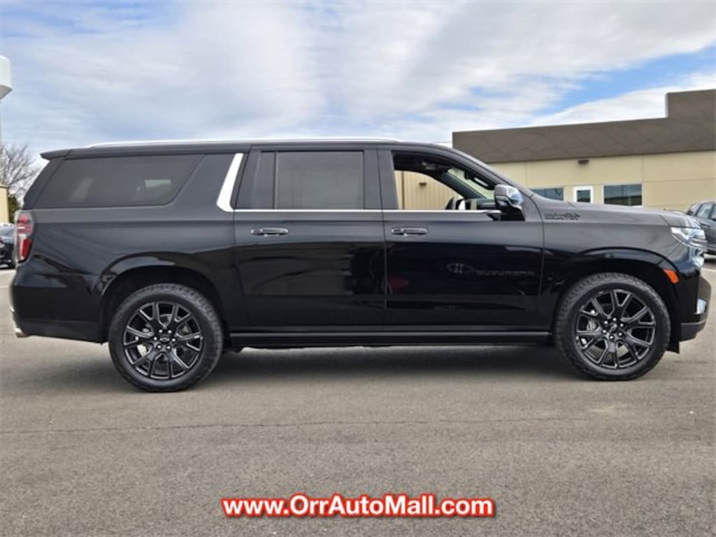 License Plate Front Mounting Package, Preferred Equipment Group 3LZ (15" Diagonal Multi-Color Head-Up Display, 1st & 2nd Row Color-Keyed Carpeted Floor Mats, 2-Speed Active Electronic AutoTrac Transfer Case, 3rd Row 60/40 Power-Folding Split-Bench, Bose 10-Speaker Surround w/CenterPoint, Bright Front & Rear Door Sill Plates, Chrome Door Handles w/Body-Color Strip, Color-Keyed Carpeting Floor Covering, Driver & Front Outboard Passenger Airbags, Dual Exhaust System, Enhanced Automatic Emergency Braking, Enhanced Driver Information Center, Floor Console, Hands-Free Rear Power Programmable Liftgate, HD Surround Vision, Heated & Ventilated Driver & Front Passenger Seats, Heated 2nd Row Outboard Seats, Heated Driver & Front Passenger Seats, Heated Steering Wheel, Hill Descent Control, Infotainment Display, Inside Rearview Auto-Dimming Rear Camera Mirror, Lane Change Alert w/Side Blind Zone Alert, LED Daytime Running Lamps, Memory Settings, Outside Heated Power-Adjustable Mirrors, Power Release 2nd Row Bucket Seats, Power Tilt & Telescopic Steering Column, Rear Camera Mirror Washer, Rear Cross Traffic Alert, Rear Pedestrian Alert, Remote Start, Safety Alert Seat, SiriusXM Radio w/360L, Universal Home Remote, Wireless Charging, and Wrapped Steering Wheel), Premium Package 2 (Dual-Pane Power Panoramic Sunroof and Power-Retractable Assist Steps), 10 Speakers, 3.23 Rear Axle Ratio, 3rd row seats: split-bench, 4-Wheel Disc Brakes, ABS brakes, Adaptive Cruise Control, Adaptive suspension, Air Conditioning, Alloy wheels, AM/FM radio: SiriusXM with 360L, Apple CarPlay/Android Auto, Auto High-beam Headlights, Auto-dimming door mirrors, Auto-dimming Rear-View mirror, Auto-leveling suspension, Automatic temperature control, Black Name Plates (LPO), Brake assist, Bumpers: body-color, Cargo Security Shade (LPO), Compass, Delay-off headlights, Driver door bin, Driver vanity mirror, Dual front impact airbags, Dual front side impact airbags, Electronic Stability Control, Emergency communication system: OnStar and Chevrolet connected services capable, Exterior Parking Camera Rear, Four wheel independent suspension, Front & Rear Black Bowtie Emblems (LPO), Front anti-roll bar, Front Bucket Seats, Front Center Armrest, Front dual zone A/C, Front reading lights, Fully automatic headlights, Garage door transmitter, Heads-Up Display, Heated door mirrors, Heated front seats, Heated rear seats, Heated steering wheel, Illuminated entry, Low tire pressure warning, Magnetic Ride Control Suspension, Memory seat, Navigation System, Occupant sensing airbag, Outside temperature display, Overhead airbag, Overhead console, Panic alarm, Passenger door bin, Passenger vanity mirror, Perforated Leather Seating Surfaces, Power door mirrors, Power driver seat, Power Liftgate, Power passenger seat, Power steering, Power windows, Premium audio system: Chevrolet Infotainment 3 Premium, Radio: Chevrolet Infotainment 3 Premium System, Rain sensing wipers, Rear air conditioning, Rear anti-roll bar, Rear reading lights, Rear window defroster, Rear window wiper, Remote keyless entry, Roof rack: rails only, Security system, Speed control, Speed-sensing steering, Split folding rear seat, Spoiler, Steering wheel memory, Steering wheel mounted audio controls, Tachometer, Telescoping steering wheel, Tilt steering wheel, Traction control, Trip computer, Turn signal indicator mirrors, Variably intermittent wipers, Ventilated front seats, Vertical Cargo Net (LPO), Voltmeter, Wheel Locks (Set of 4) (LPO), Wheels: 22" x 9" 6-Spoke Carbon Flash Metallic Alum, and Wheels: 22" x 9" Sterling Silver Premium Painted.