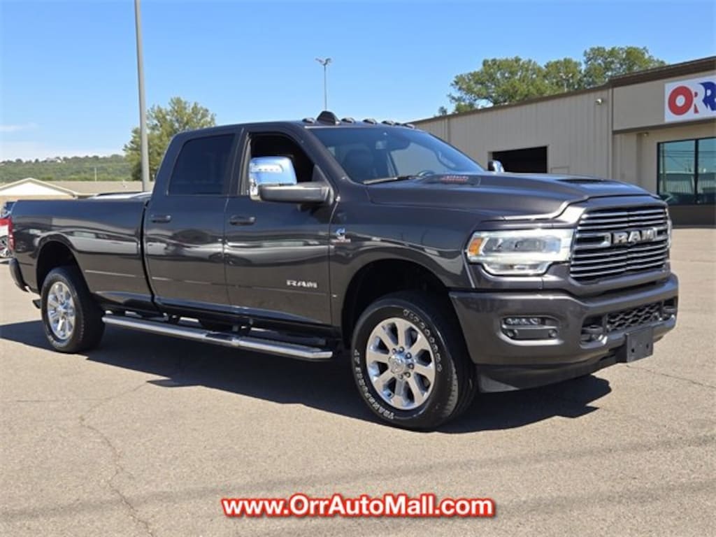 Bed Utility Group (LED Bed Lighting, MOPAR Deployable Bed Step, and MOPAR Spray In Bedliner), Cold Weather Group (Engine Block Heater and MOPAR Winter Front Grille Cover), Laramie Level B Equipment Group (12" Touchscreen Display, 17 Speaker harman/kardon Premium Sound, 18" x 8" Polished Aluminum Wheels, 2nd Row In Floor Storage Bins, 4G LTE Wi-Fi Hot Spot, Alexa Built-In, Apple CarPlay, Auto Adjust In Reverse Exterior Mirrors, Auto Dimming Exterior Passenger Mirror, Auto High Beam Headlamp Control, Auto Power-Folding Mirrors, Auto-Dimming Exterior Mirrors, Blind Spot & Cross Path Detection, Center Hub, Chrome Exterior Mirrors, Connected Travel & Traffic Services, Connectivity - US/Canada, Disassociated Touchscreen Display, Exterior Mirrors Courtesy Lamps, Exterior Mirrors w/Heating Element, Exterior Mirrors w/Memory, Exterior Mirrors w/Supplemental Signals, Foam Bottle Insert (Door Trim Panel), For Details Visit DriveUconnect.com, For More Info, Call 800-643-2112, Forward & Reverse Utility Lights, Front LED Fog Lamps, Global Telematics Box Module (TBM), Google Android Auto, GPS Antenna Input, GPS Navigation, HD Radio, Heated Second Row Seats, Integrated Voice Command w/Bluetooth, LED Reflector Headlamps, LED Tail Lamps, Mirror Running Lights, Off-Road Information Pages, ParkSense Front/Rear Park Assist System, Power Adjust Mirrors, Power Adjustable Pedals w/Memory, Power Heat Fold Memory Telescopic Mirrors, Power Telescoping Mirrors, Power-Adjustable Convex Aux Mirrors, Radio: Uconnect 5 Nav w/12.0" Display, Rain Sensitive Windshield Wipers, Rear Power Sliding Window, Rear Window Defroster, Remote Tailgate Release, Selectable Tire Fill Alert, SiriusXM Radio Service, SiriusXM w/360L, and Trailer Tow Pages), Quick Order Package 21H Laramie, Sport Appearance Package (20" x 8" Polished Aluminum Wheels, Black Interior Accents, Body Color Grille Surround, Sport Decal, and Sport Performance Hood), Towing Technology Group (CTR Stop Lamp w/Cargo View Camera, Surround View Camera System, and Trailer Reverse Guidance), 10 Speakers, 115V Auxiliary Rear Power Outlet, 2 Way Rear Headrest Seat, 220 Amp Alternator, 3.73 Axle Ratio, 4 Way Front Headrests, 4-Wheel Disc Brakes, 5th Wheel/Gooseneck Towing Prep Group, 8.4" Touchscreen Display, ABS brakes, Active Noise Control System, Adaptive Steering System, Air Conditioning, Alloy wheels, AM/FM radio: SiriusXM with 360L, Apple CarPlay/Android Auto, Auto-dimming Rear-View mirror, Automatic temperature control, Brake assist, Bumpers: body-color, Chrome Flat Wheel-to-Wheel Side Steps, Clearance Lamps, Compass, Dash Pass Thru Wire Circuits, Delay-off headlights, Driver door bin, Driver vanity mirror, Dual front impact airbags, Dual front side impact airbags, Electronic Stability Control, Electronically Controlled Throttle, Folding Flat Load Floor Storage, Front anti-roll bar, Front Center Armrest w/Storage, Front dual zone A/C, Front License Plate Bracket, Front reading lights, Front Seat Back Map Pockets, Fully automatic headlights, Garage door transmitter, Heated door mirrors, Heated Front Seats, Heated front seats, Heated Steering Wheel, Heated steering wheel, High Back Seats, I/P Mounted Auxiliary Switches, Illuminated entry, Integrated Center Stack Radio, Leather steering wheel, Leather Trim 40/20/40 Bench Seat, Low tire pressure warning, Navigation System, Occupant sensing airbag, Outside temperature display, Overhead airbag, Overhead console, Panic alarm, ParkView Rear Back-Up Camera, Passenger door bin, Passenger vanity mirror, Power 8-Way Adjustable Passenger Seat, Power Adjust 8-Way Driver Seat, Power door mirrors, Power driver seat, Power passenger seat, Power steering, Power windows, Radio data system, Radio: Uconnect 5 Nav w/8.4" Display, Rear 60/40 Folding Seat, Rear reading lights, Rear seat center armrest, Rear step bumper, Remote keyless entry, Security system, Speed control, Split folding rear seat, Steering wheel moun